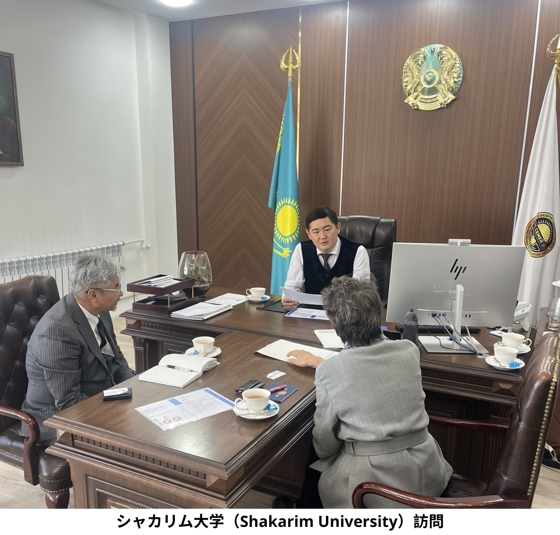 また、ナルホズ大学カザフスタン・日本人材センター(KJC)も訪問し、センター長と今後の人材育成の連携・協力の方向性について意見交換を行いました。