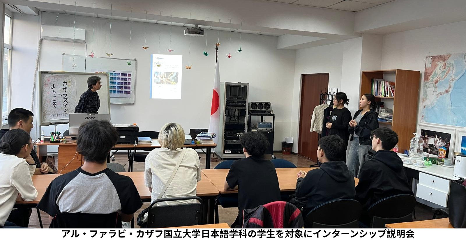 同じく協定校であるアル・ファラビ・カザフ国立大学では、日本語学科の学生を対象にインターンシップ説明会を実施しました。