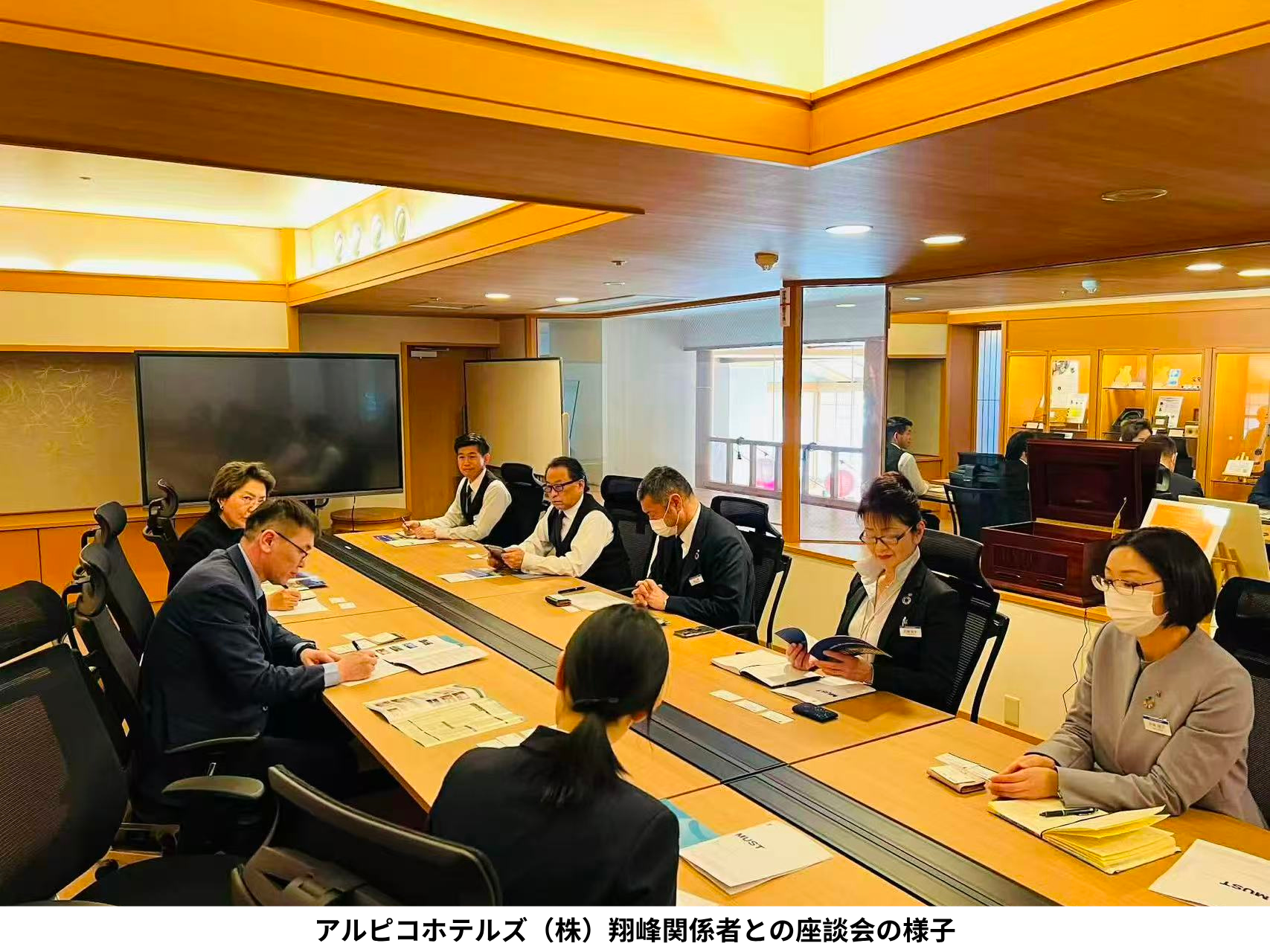 また調印式後には、JIDAと同大学関係者らは、同大学の理系学生の受入先である株式会社CSI東京支社、および文系人材の受入先であるアルピコホテルズ株式会社(翔峰)を訪問し、現場視察および意見交換を実施いたしました。